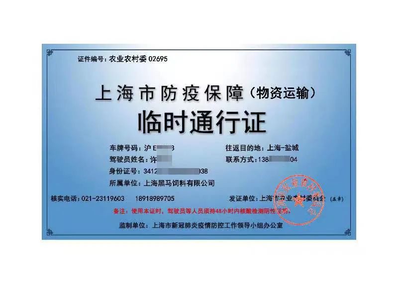 由于養殖業事關民生保障,而我司作為養殖業的上游企業,承擔著保障飼料供應的重要任務。基于此,市農業農村委將我司列為上海市新冠疫情防控農產品供給保障重點企業,并辦理好通行證及相關證明文件。